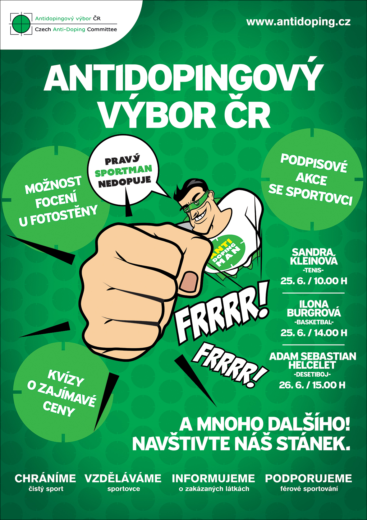 Ve dnech 23. 6. až 27. 6. 2019 proběhne v Liberci a v Jablonci Olympiáda dětí a mládeže. Na jedné z největších akcí na našem území se účastníci mohou seznámit i s problematikou boje proti dopingu. Stánek Antidopingového výboru bude otevřen po celou dobu trvání a všichni zájemci o tuto problematiku jsou srdečně zváni. Součástí programu budou podpisové akce se známými sportovci, soutěžní kvíz o zajímavé ceny, možnost vyfocení u speciální fotostěny a mnoho dalšího.